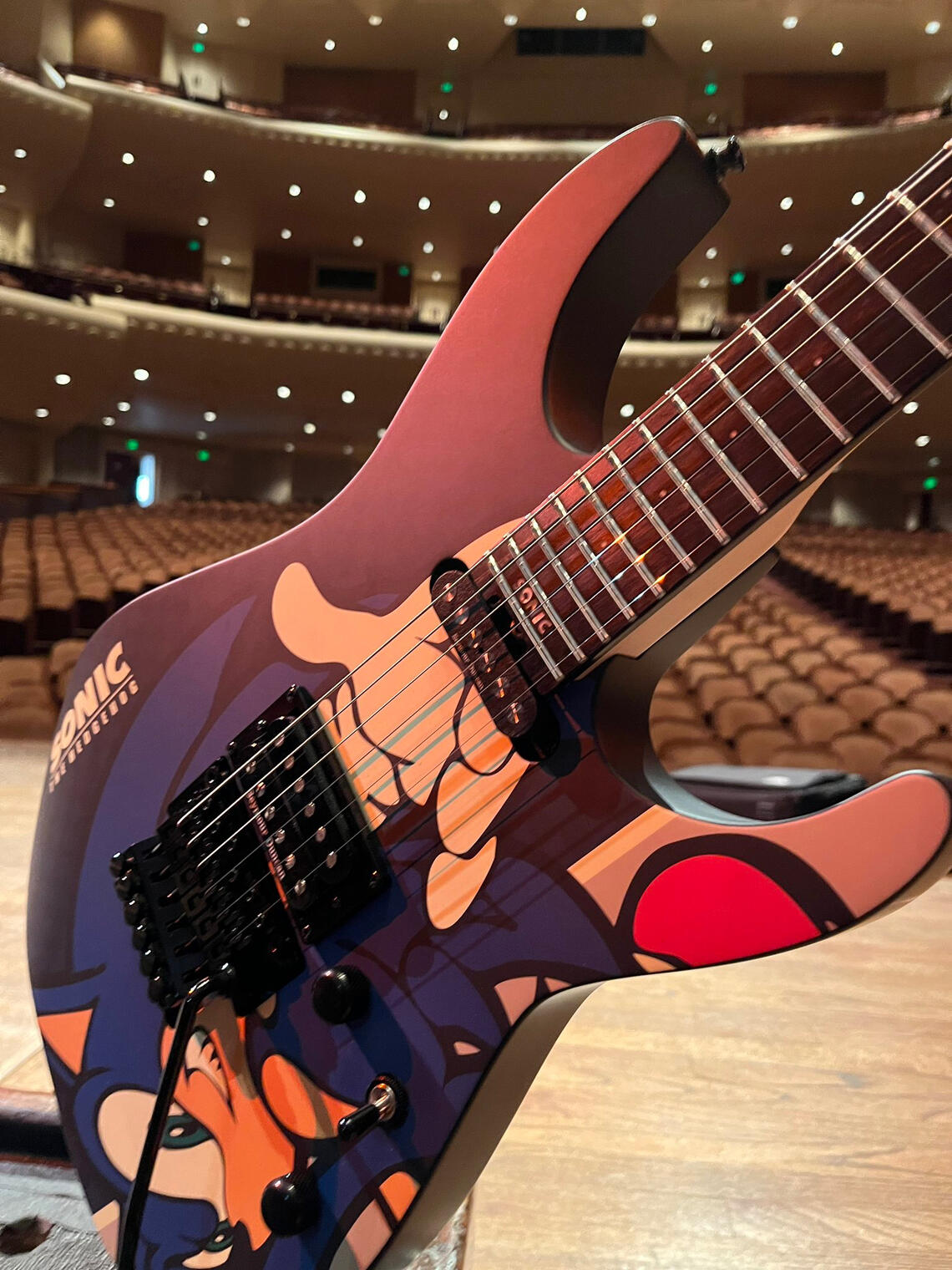 Acquired: 2012Notes: Custom made for Sonic's 20th anniversary. Replica model (SONIC-II) and budget model (LTD SN-25TH) were sold later in limited quantities. Senoue owns a second model with an EVH D-Tuna and ESP Arming Adjuster for live use, though since his acquisition of a Digitech Drop, it hasn't been used.