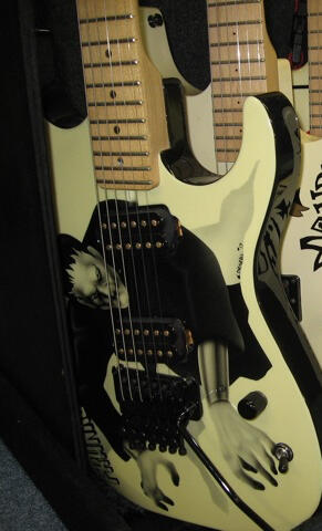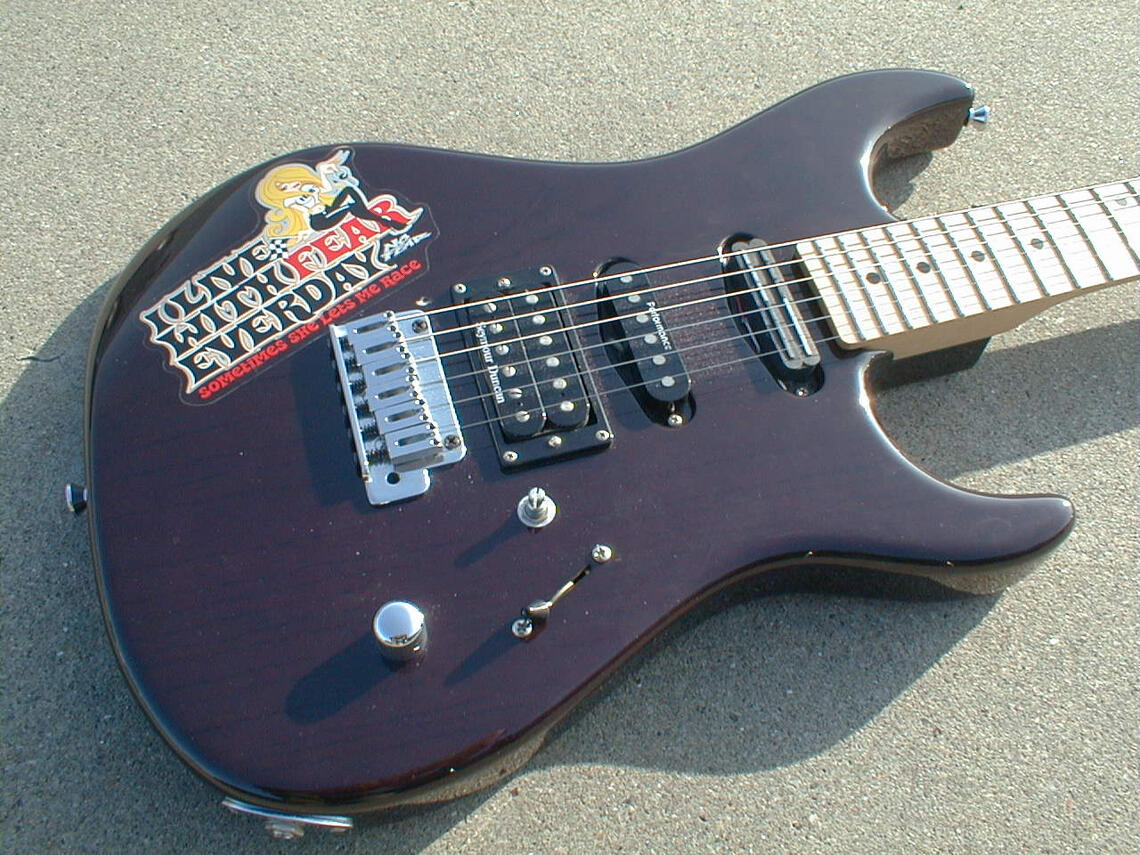 Acquired: 1997Notes: Sub-main guitar, secondary and backup to Koa Maple. Stock model heavily modified whose original neck was applied to the Jasperwood in 1998. Floyd Rose floats. Equipped with PU direct switch.