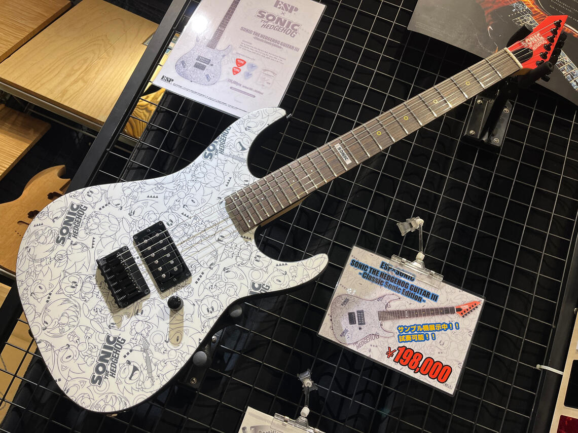 Acquired: 2012Notes: Custom made for Sonic's 20th anniversary. Replica model (SONIC-II) and budget model (LTD SN-25TH) were sold later in limited quantities. Senoue owns a second model with an EVH D-Tuna and ESP Arming Adjuster for live use, though since his acquisition of a Digitech Drop, it hasn't been used.