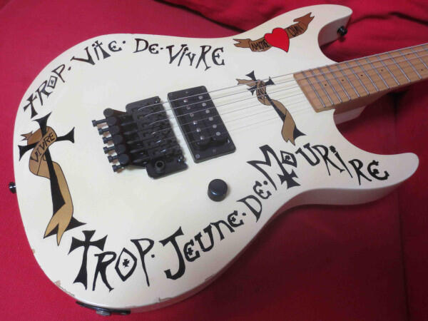 Acquired: 1997Notes: Sub-main guitar, secondary and backup to Koa Maple. Stock model heavily modified whose original neck was applied to the Jasperwood in 1998. Floyd Rose floats. Equipped with PU direct switch.
