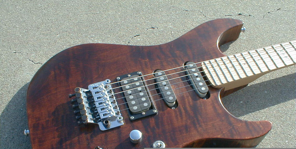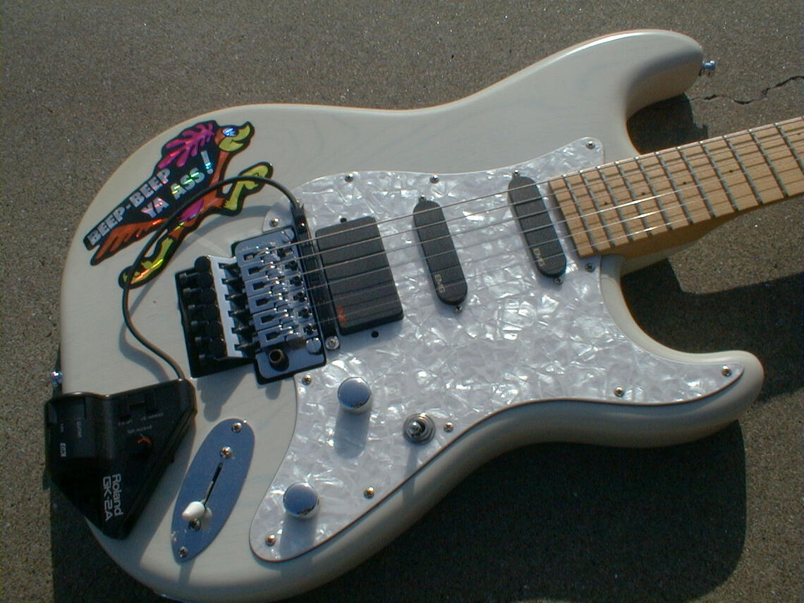 Acquired: 1997Notes: Sub-main guitar, secondary and backup to Koa Maple. Stock model heavily modified whose original neck was applied to the Jasperwood in 1998. Floyd Rose floats. Equipped with PU direct switch.