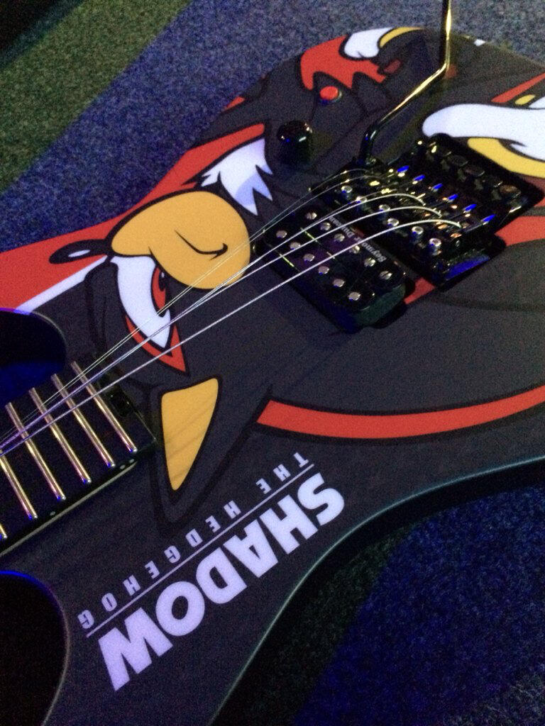 Acquired: 2012Notes: Custom made for Sonic's 20th anniversary. Replica model (SONIC-II) and budget model (LTD SN-25TH) were sold later in limited quantities. Senoue owns a second model with an EVH D-Tuna and ESP Arming Adjuster for live use, though since his acquisition of a Digitech Drop, it hasn't been used.