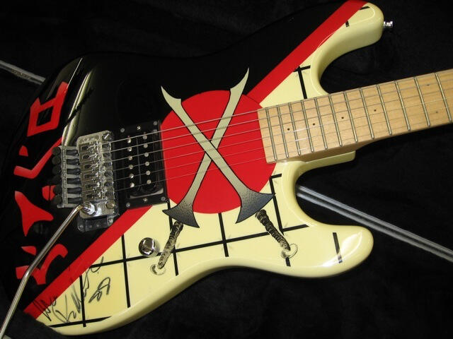 Acquired: 1990Notes: Sub-main guitar, stock model made of Japanese horse-chestnut that's been modified heavily throughout its life. Floyd floats as of 2015. Autographed by Ronni LeTekro of TNT.Modification history: